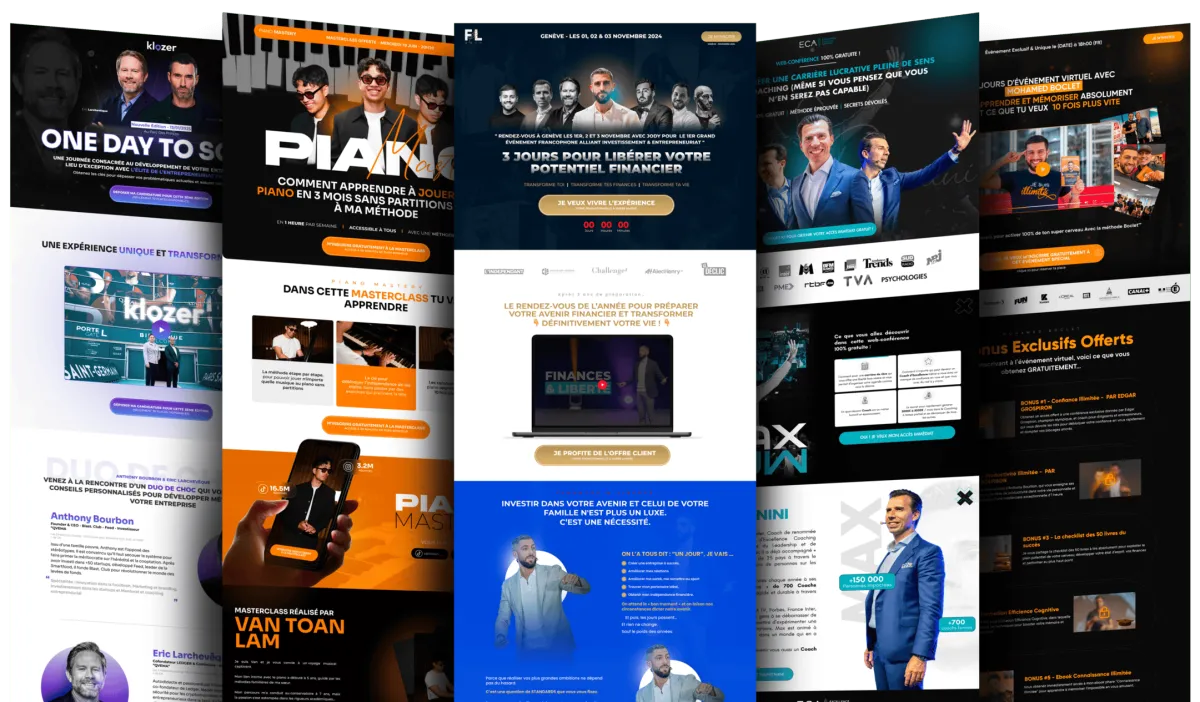 Tunnel de vente complet et personnalisé : Page de capture, page de vente, page de checkout, page d’upsell.